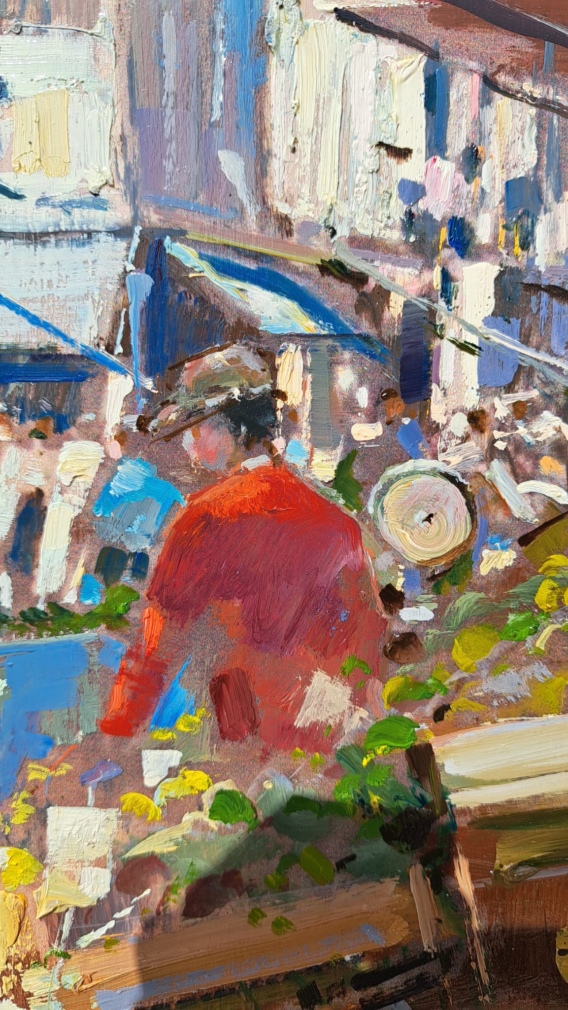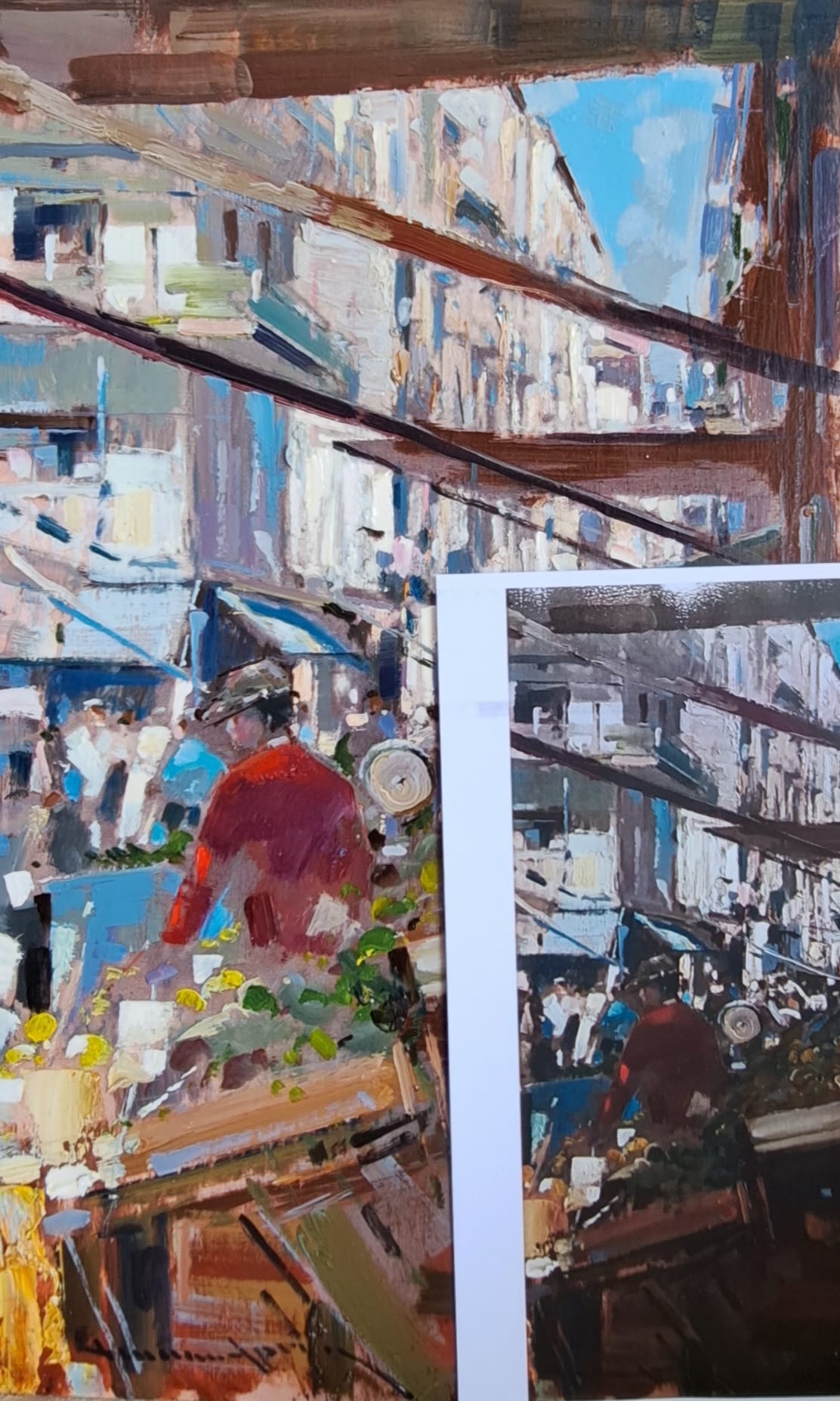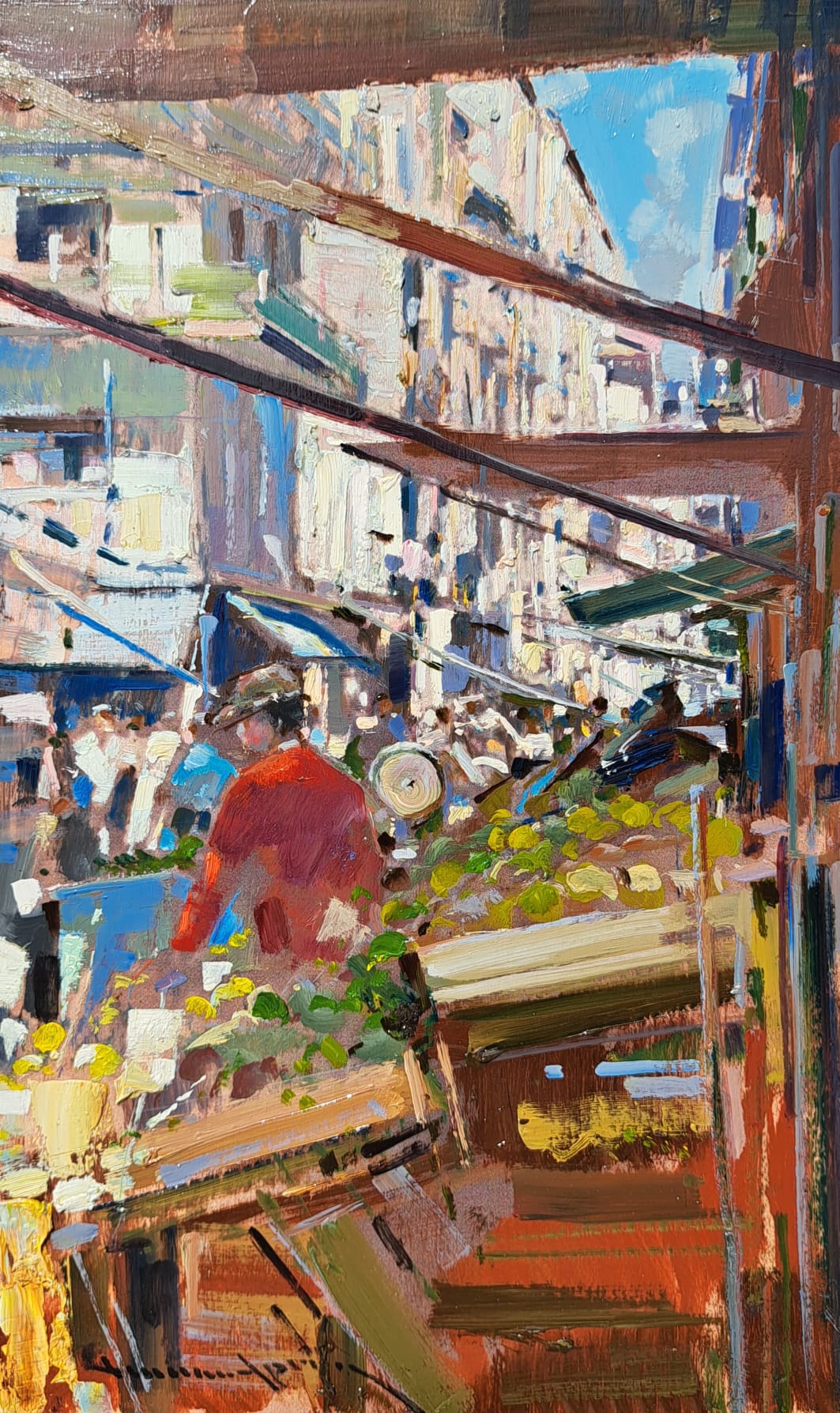 Vincenzo Aprile opera unica tecnica olio su tavola misura 30×50 cm titolo Al Mercato
