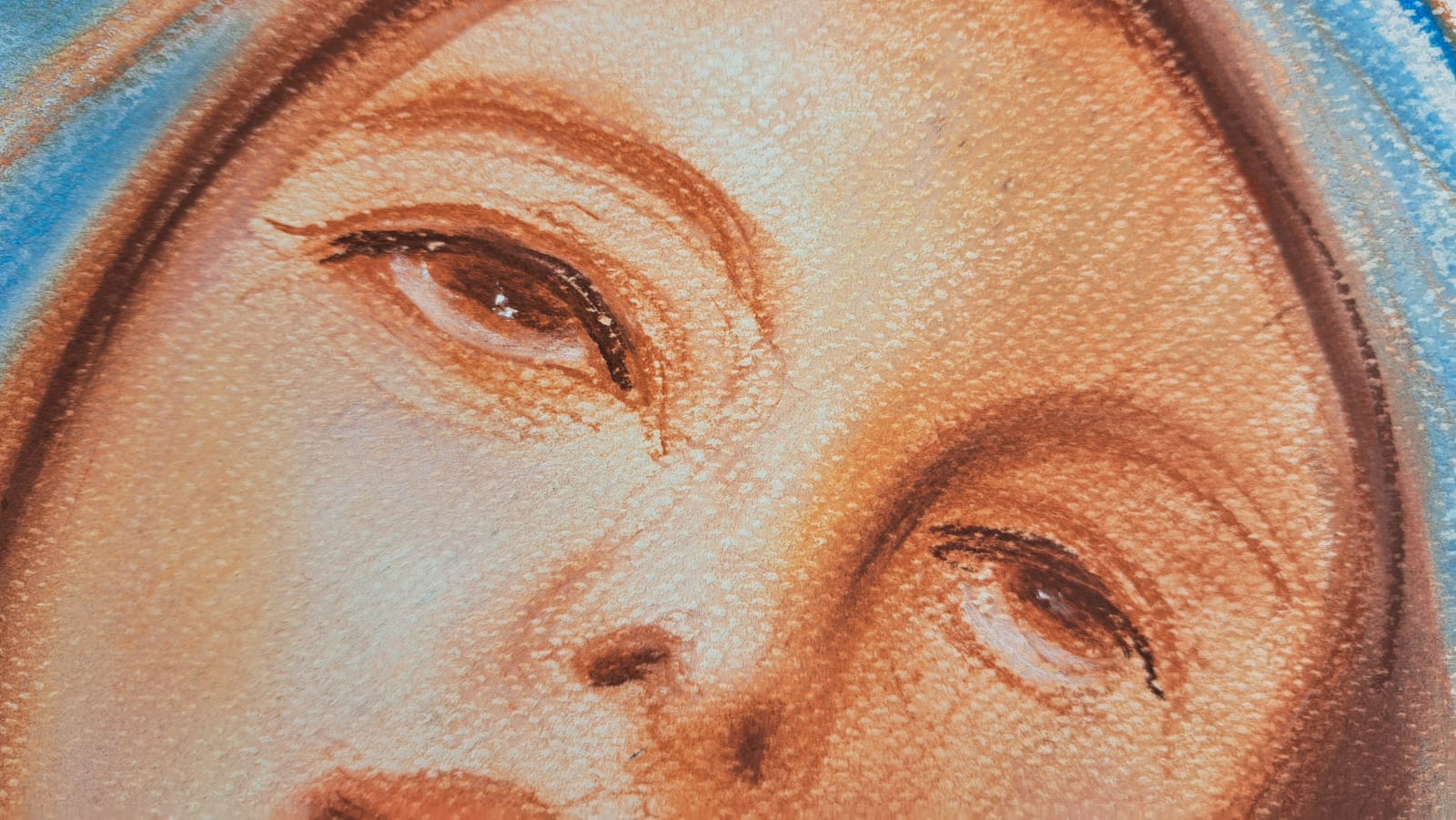 ANTONIO SCIACCA OPERA UNICA VERGINE MARIA TECNICA SANGUIGNA E PASTELLI MISURA CM 50X70
