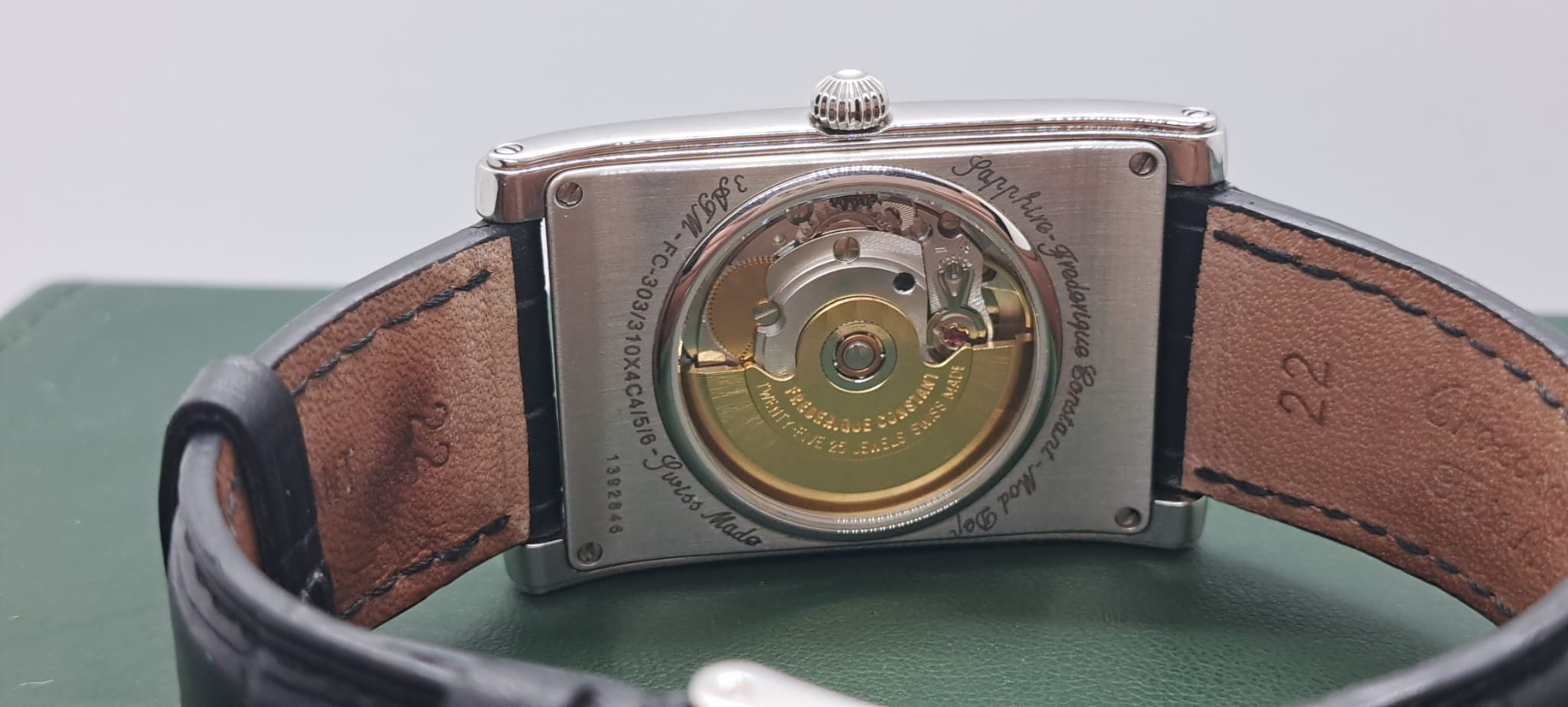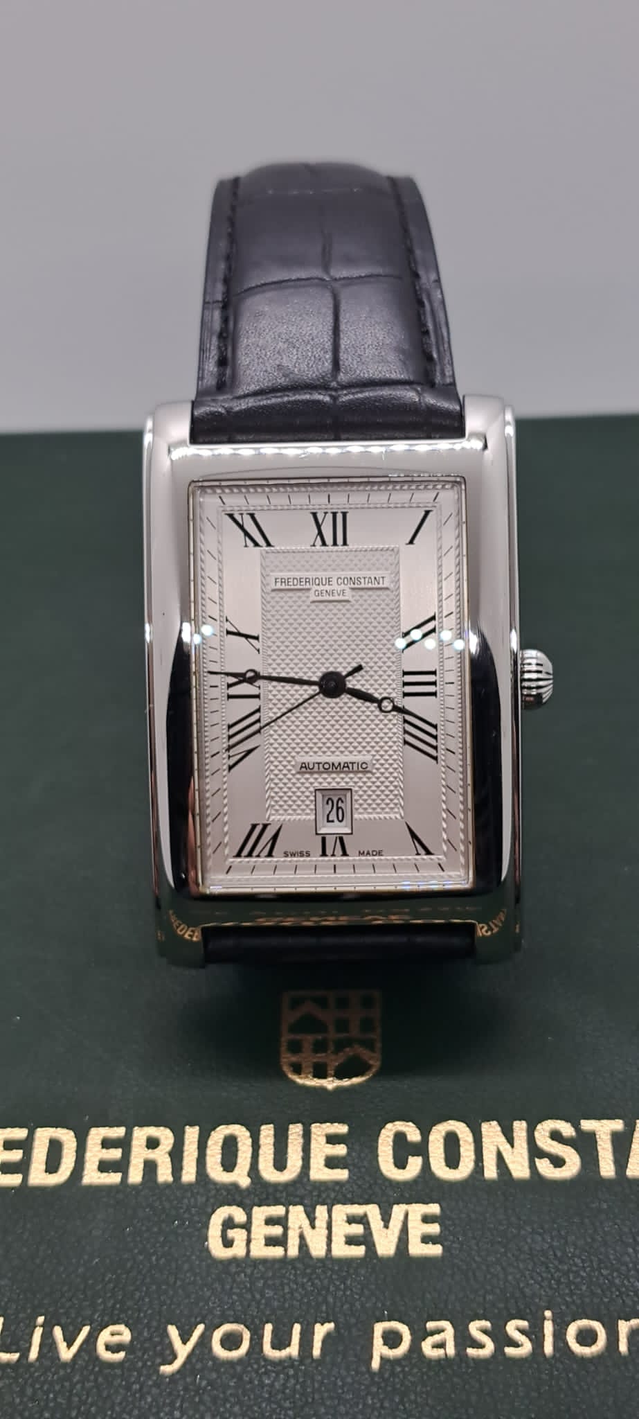 Frederique Constant modello Tank Tonneau materiale della cassa acciaio inossidabile. Colore quadrante argento movimento automatico
