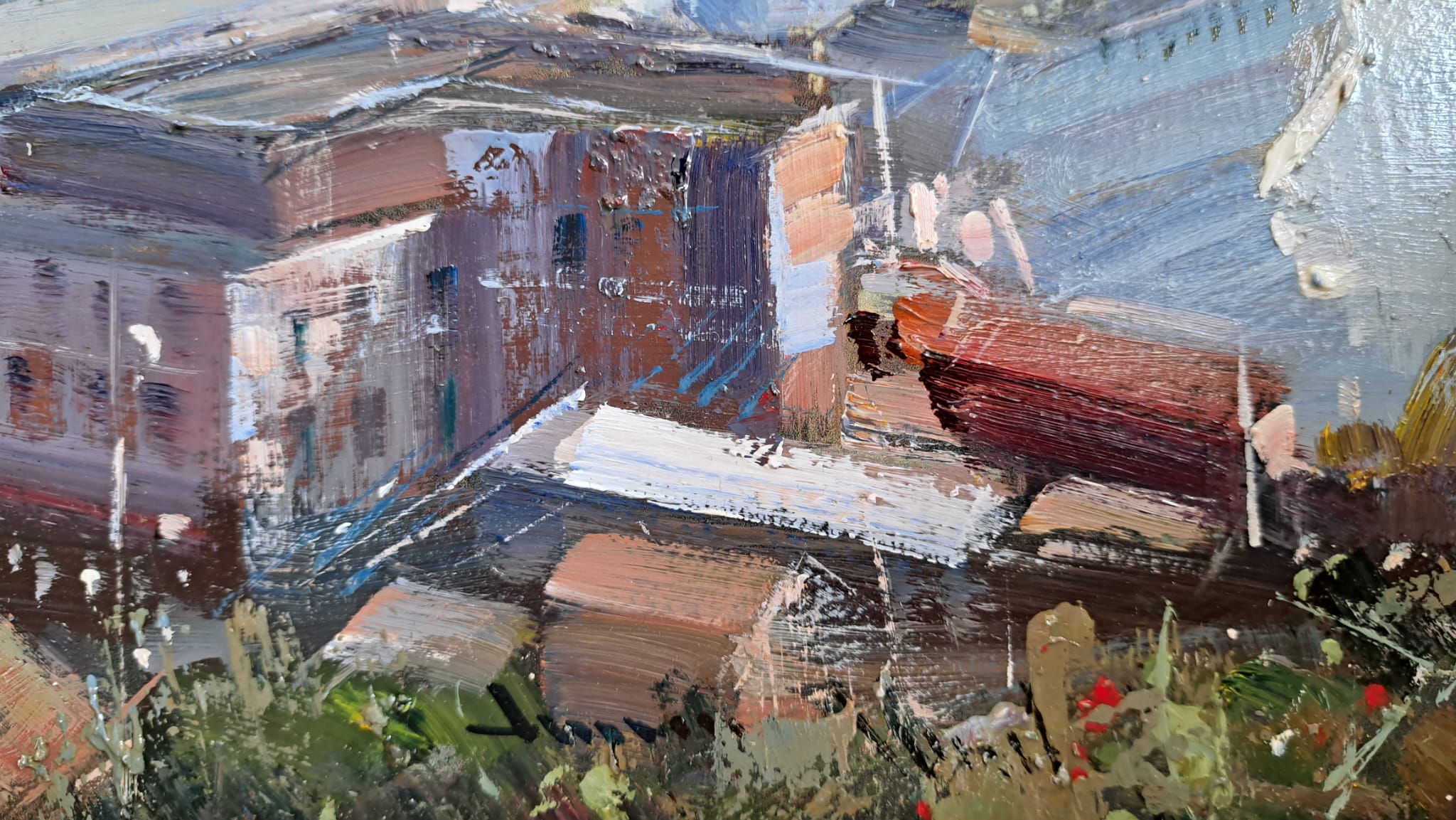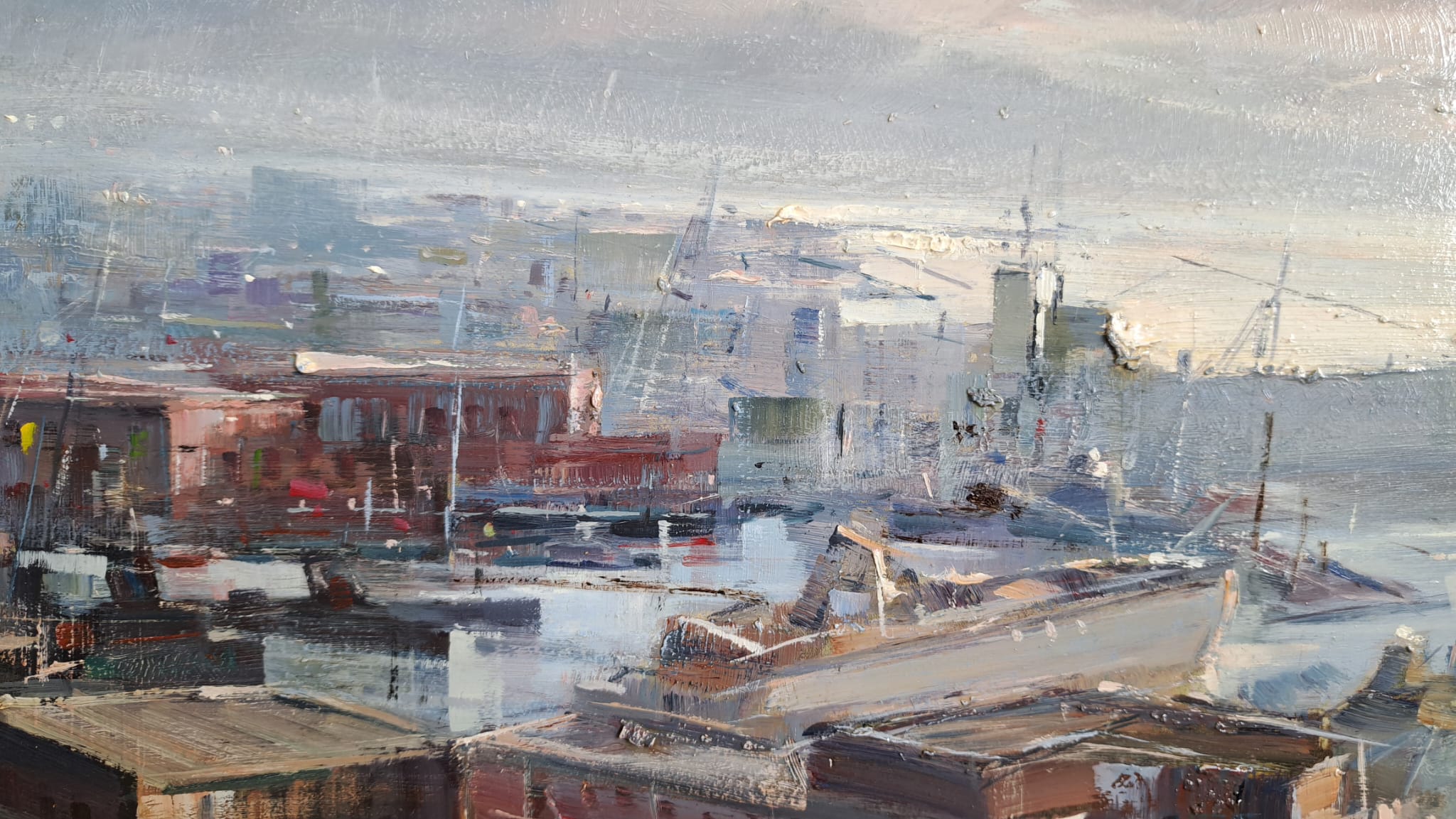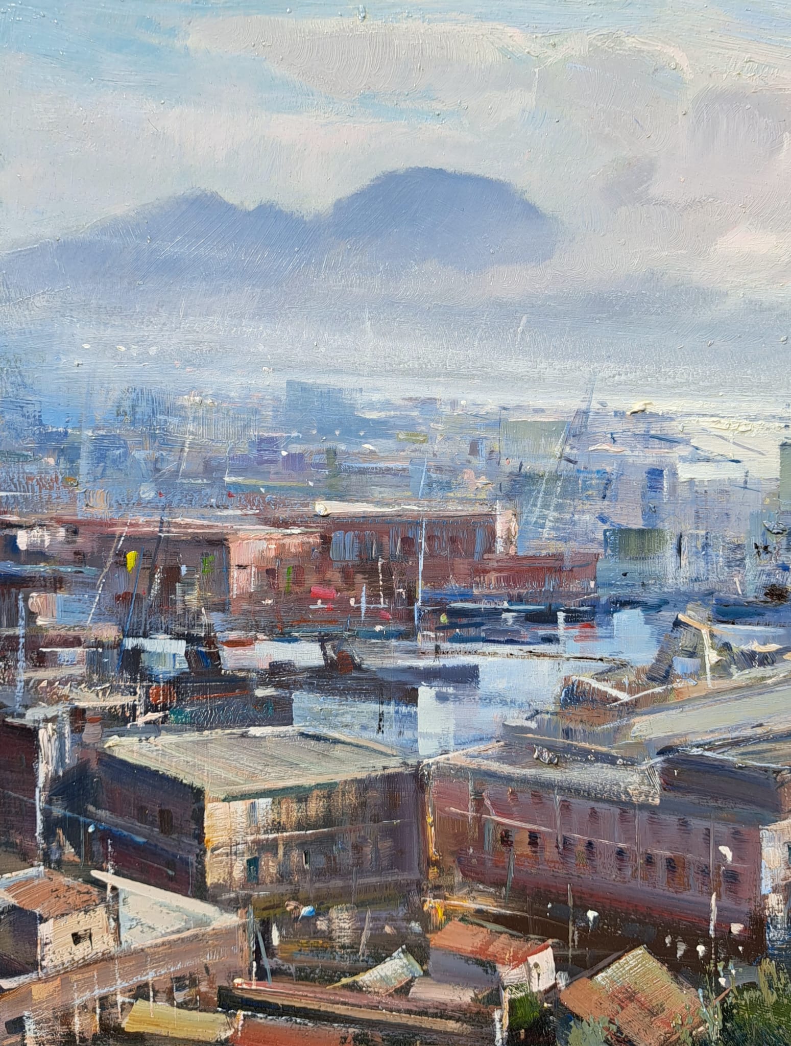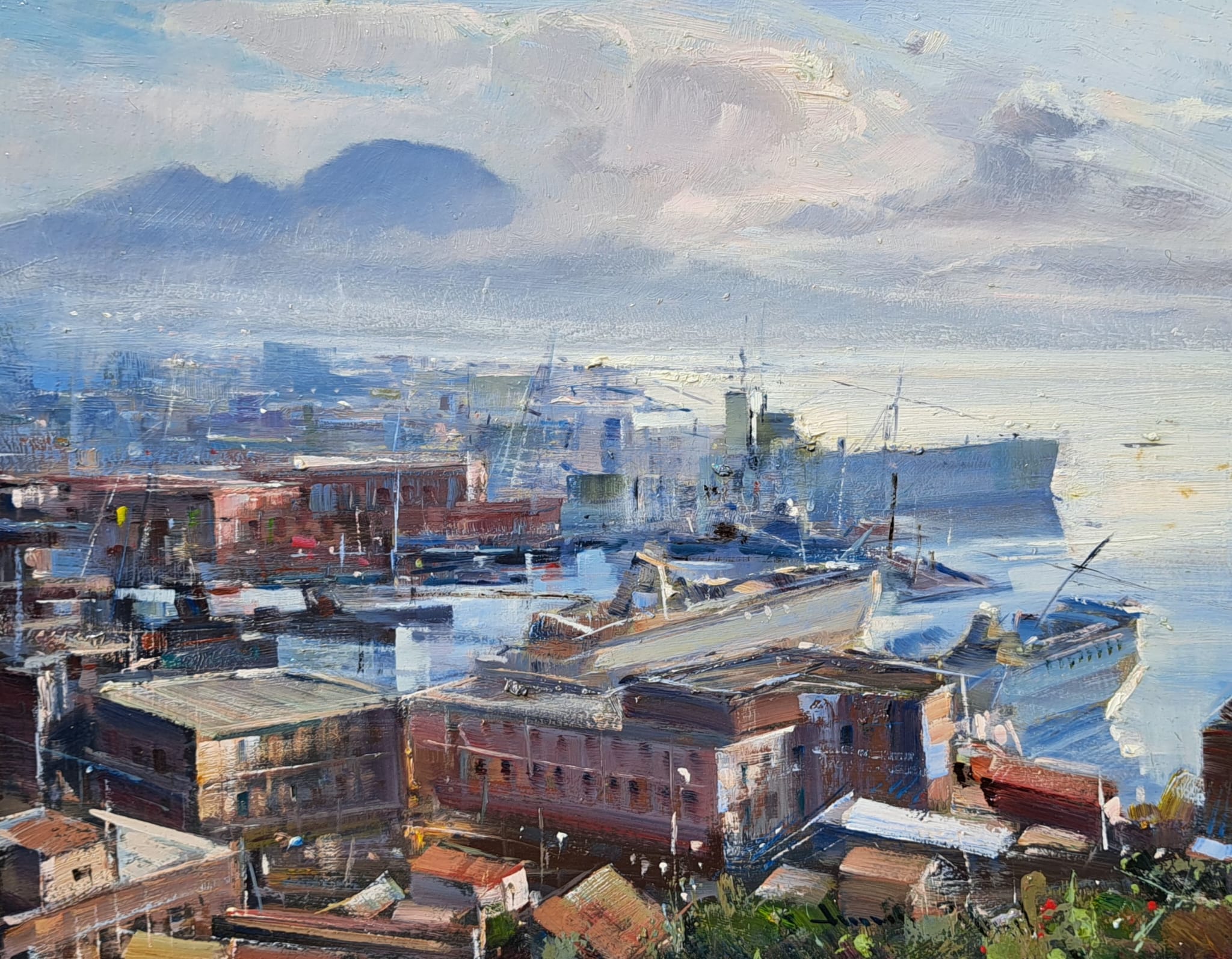 Vincenzo Aprile opera unica tecnica olio su tavola misura 30×50 cm titolo Il Porto