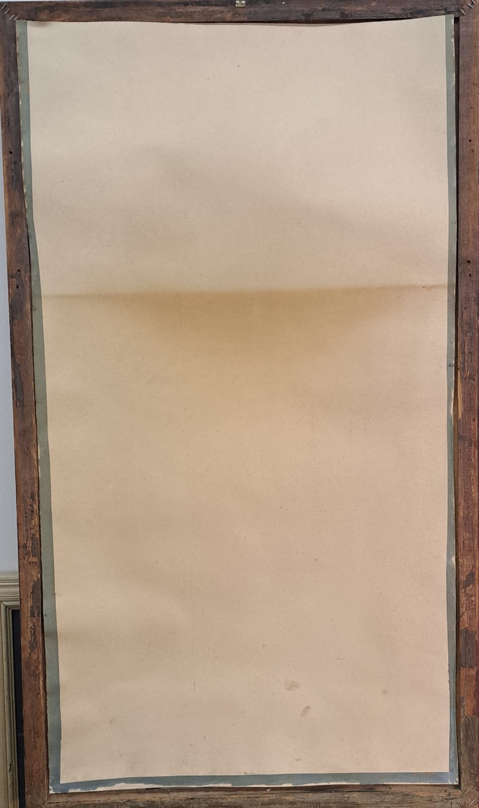 La cornice in radica dell’epoca, con i suoi motivi naturali e complessi, aggiunge un ulteriore livello di eleganza e autenticità all’opera. La radica, con le sue venature uniche, incornicia il dipinto in modo che ne esalti la bellezza e l’importanza storica.