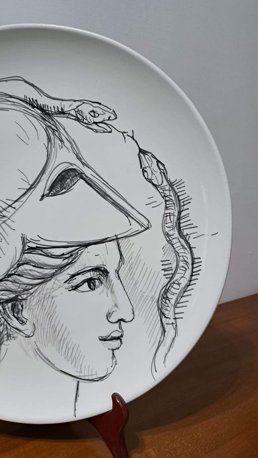 Piatto in Ceramica di Deruta Dea Greca Atena 46 cm