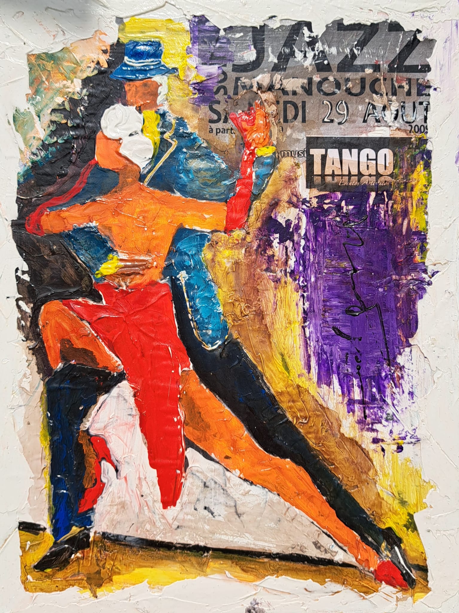 Una giovane coppia si lascia guidare dall’istinto ed improvvisa uno spettacolo per strada. L’uno affonda lo sguardo nell’altro: tra i due si avverte una tensione, una tensione erotica. Incurante di ciò che li circonda la coppia accenna alcuni passi di sensualissimo Tango. sono attimi di breve ma intesa emozione….. Questo è il mondo che dipinge Salvador Gaudenti artista italo-argentino. Nelle sue tele, racconta storie come quella appena descritta. Il gioco della seduzione si perpetua in ogni figura del tango ed è ciò che rende magico questo ballo. la straordinarietà di Gaudenti è quella di saper tradurre in pittura le sensazioni del Tango.