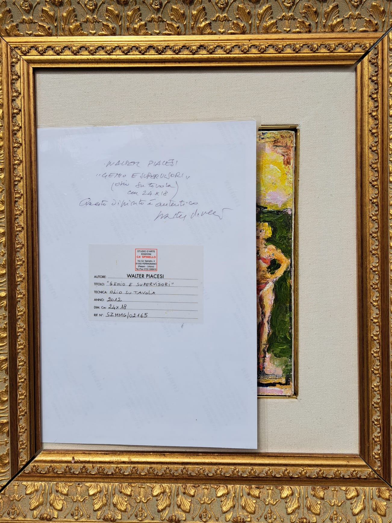 WALTER PIACESI OPERA UNICA OLIO SU TAVOLA GENIO E SUPERVISORE MISURA CM 24X18