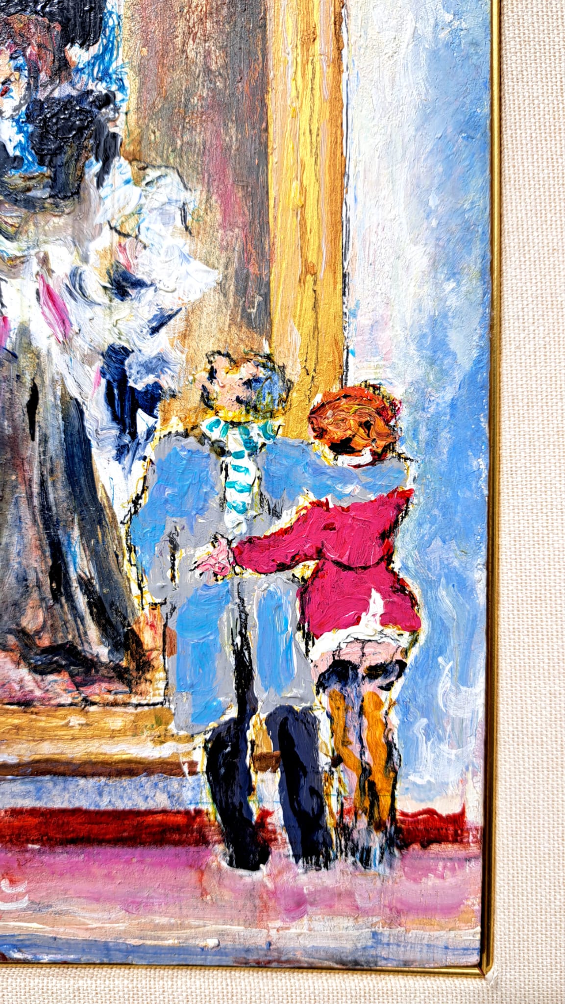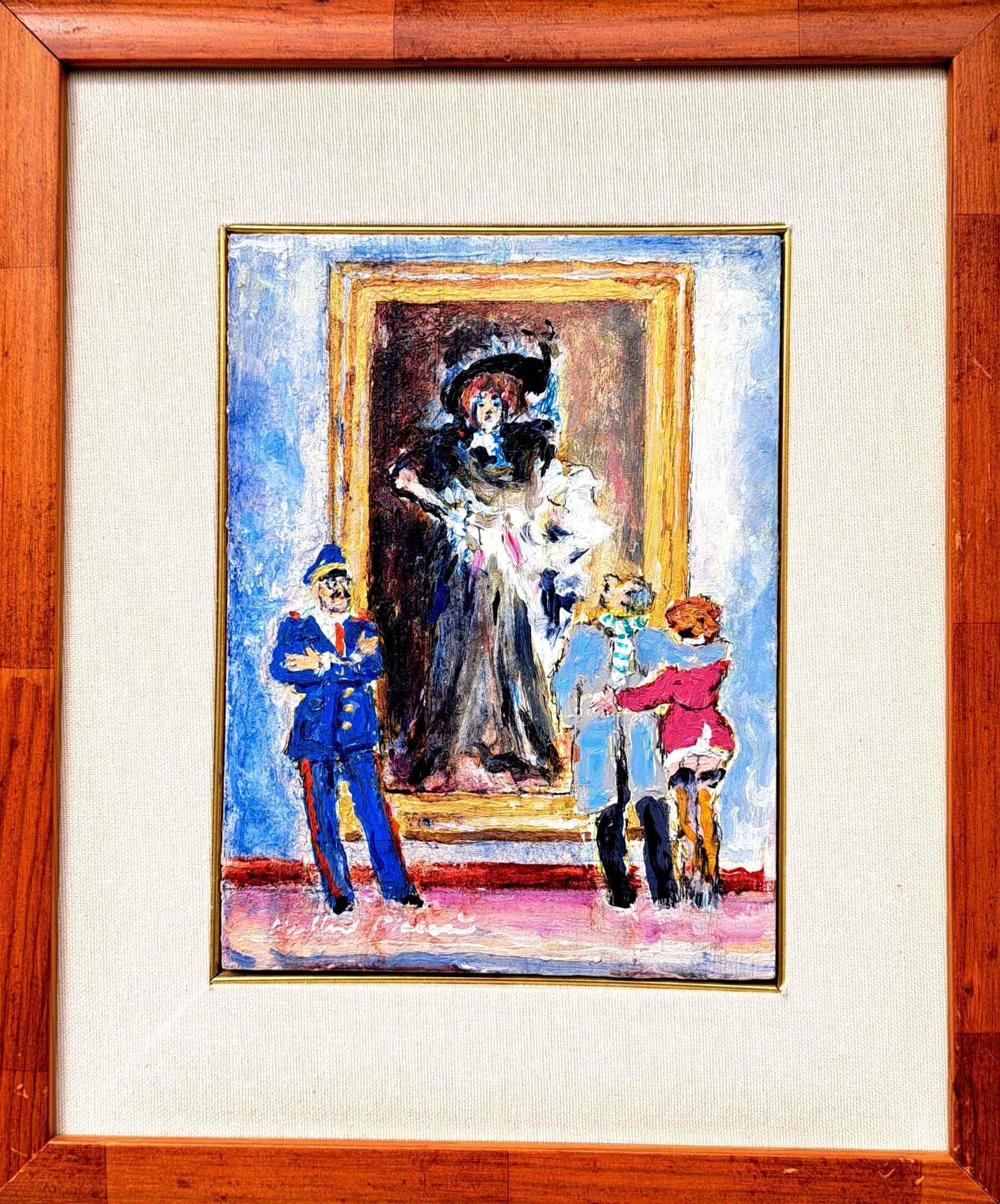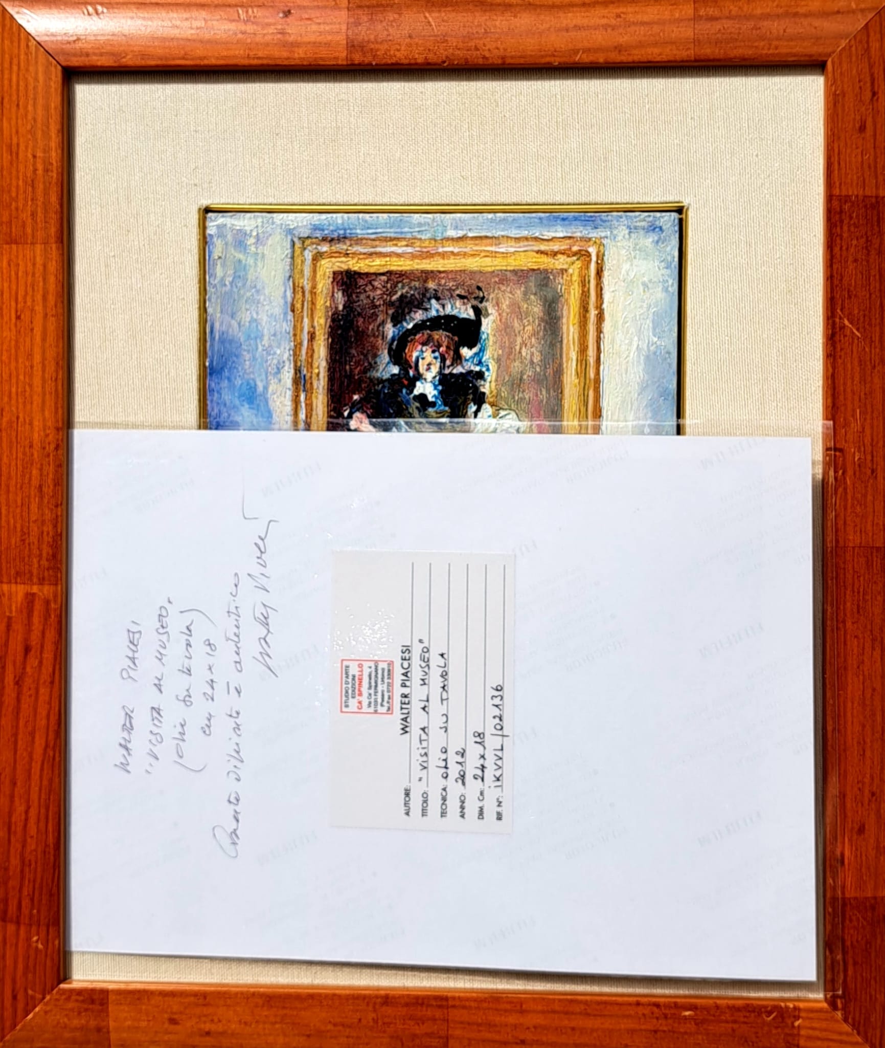 Opera unica di Walter Piacesi olio su tavola misura 18×24 cm titolo ” Visita al Museo ” completa di autentica e archivio ufficiale CA’ SPINELLO