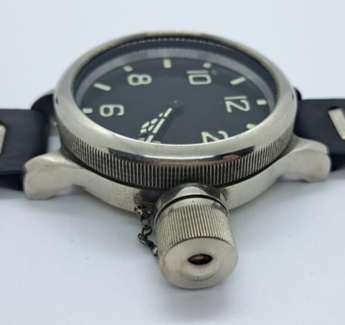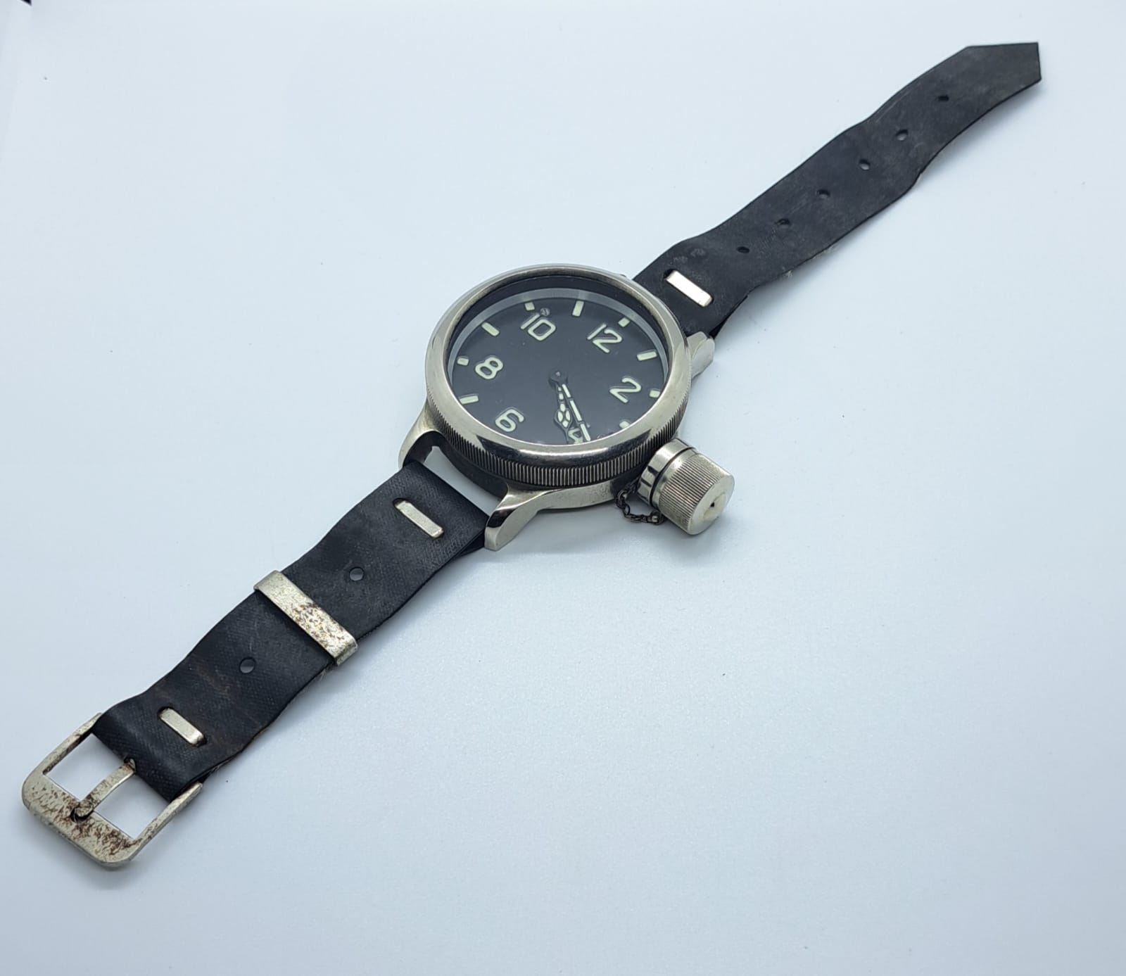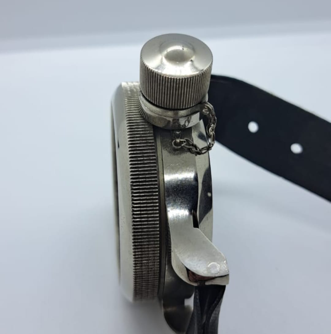 Negli anni ’50 e ’70, la fabbrica Zlatoust ha prodotto gli orologi 191 per i subacquei della Marina dell’URSS. Questo orologio è unico! È uno degli orologi da polso più grandi al mondo, con un diametro di 60 mm, escluse corona e anse, e un peso di circa 260 grammi. La produzione della cassa monoblocco in acciaio inossidabile è un processo complicato, ma che produce un prodotto imbattibile. Agli albori, il materiale radioattivo veniva utilizzato anche negli indicatori luminosi dei quadranti! A poco a poco gli orologi furono ritirati dall’uso professionale, ma la leggenda continuava a sopravvivere. Tuttavia, la domanda crea offerta. Questo particolare orologio assegnato come da numero associato a ufficiale URSS con dedica all’interno della cassa originale in ogni sua parte. Introvabile trovarlo in queste condizioni. Spedizione tracciata e assicurata.